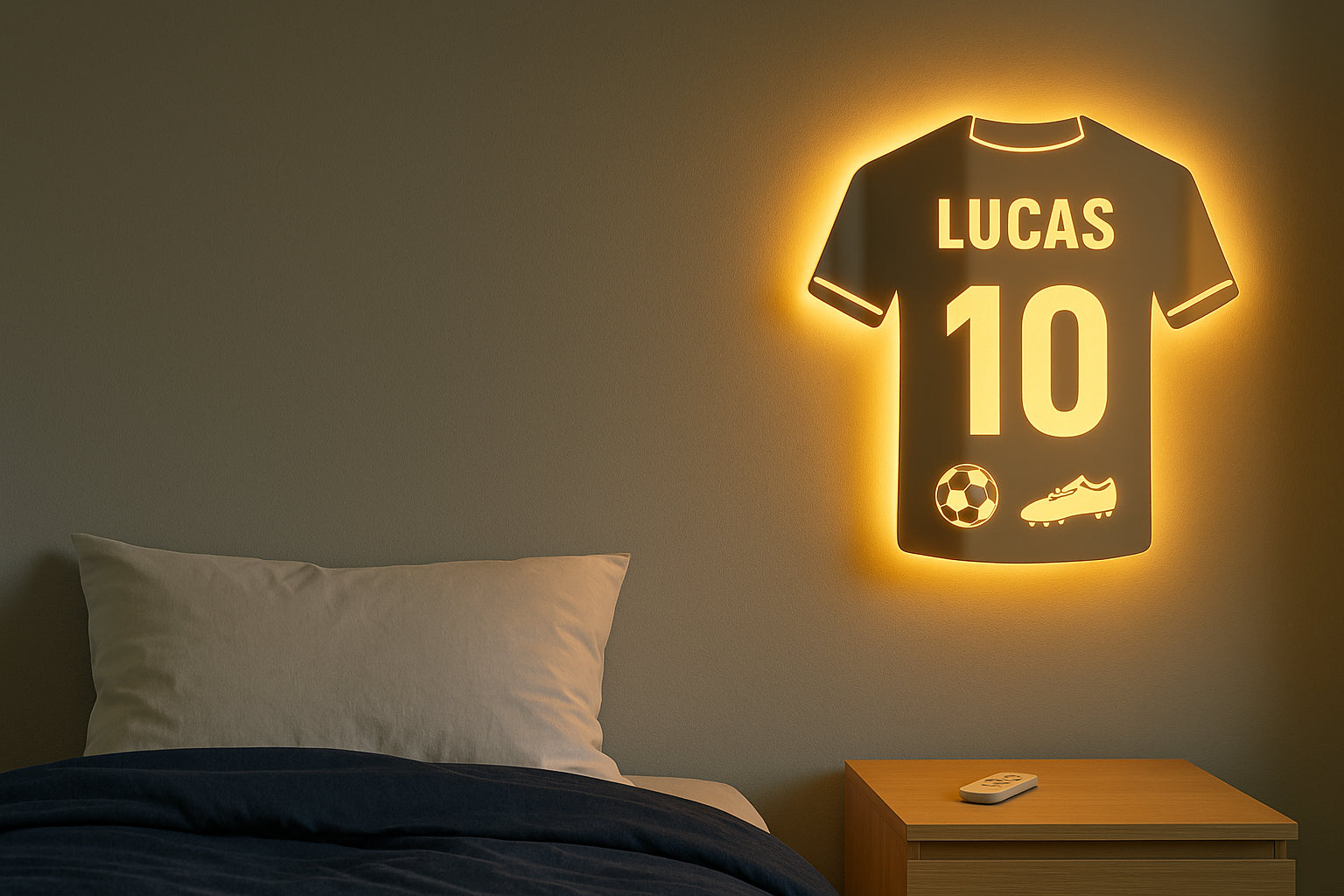 De jour comme de nuit, elle met en valeur leur prénom et leur numéro, créant une ambiance magique qui les accompagne jusqu’au sommeil.